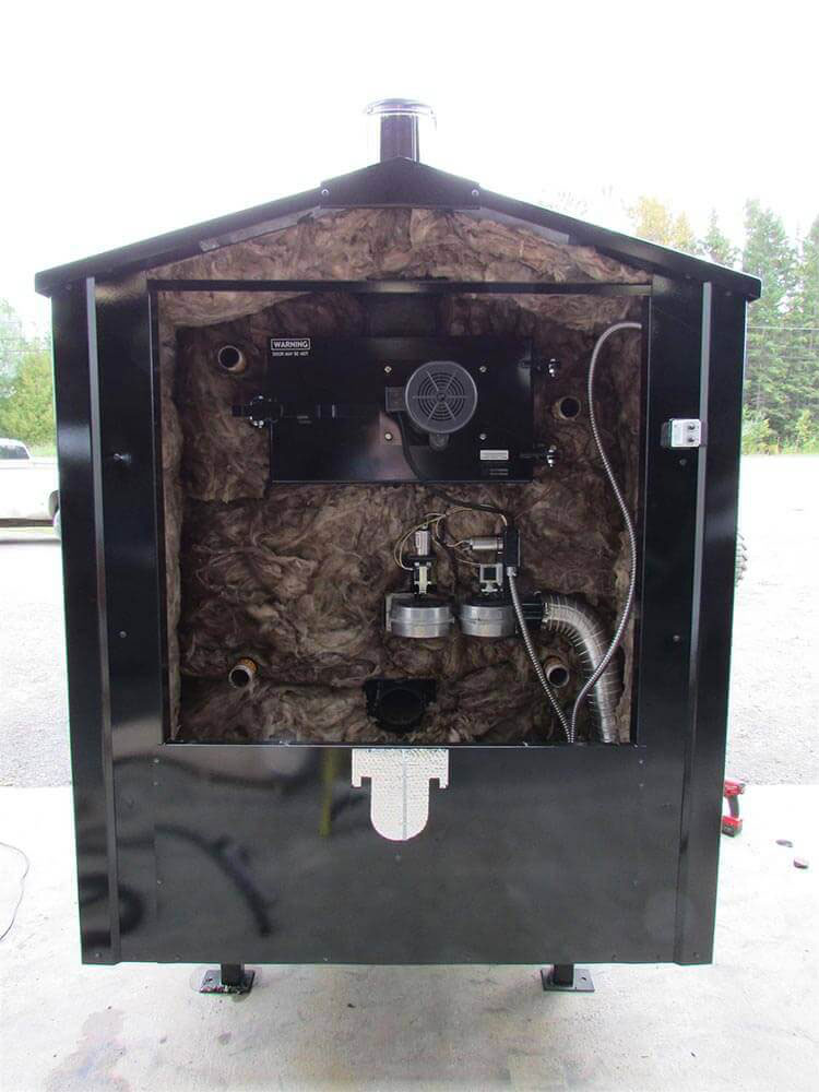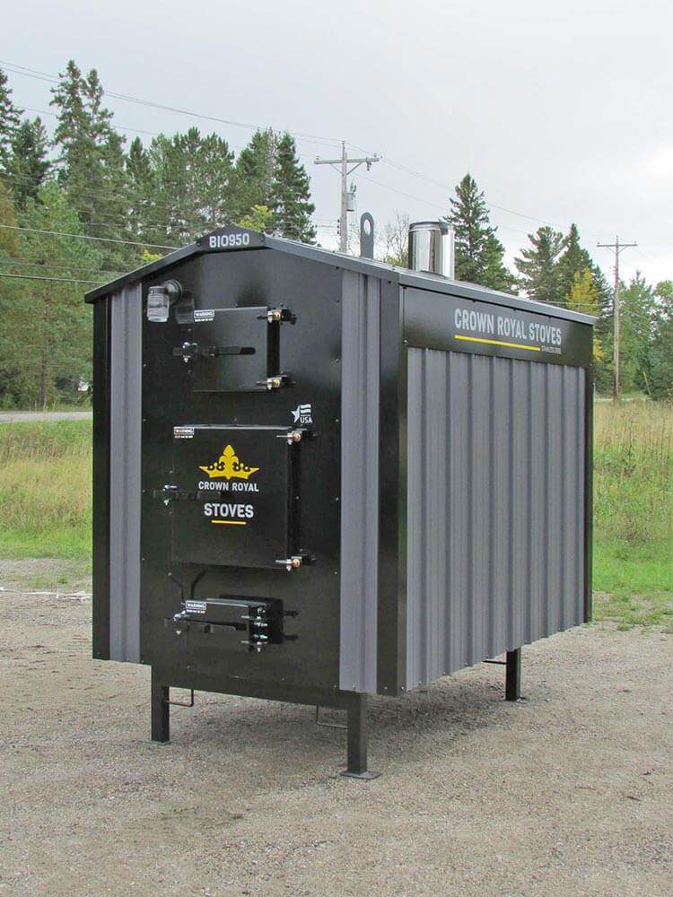 Crown Royal Stove’s wood chip boiler is an automated fed system with a storage bin, designed to be located next to your fuel storage for convenience, and is normally filled once a week (or longer), depending on the temperature outside and BTU’s needed. Our wood chip boiler burns numerous types of fuel: woods chips, wood pellets, coal, silage, etc. The ability to burn multiple fuel types provides significant value, as almost all users can access at least one or two locally sourced biomass fuels for a fraction of the price of propane or natural gas.
